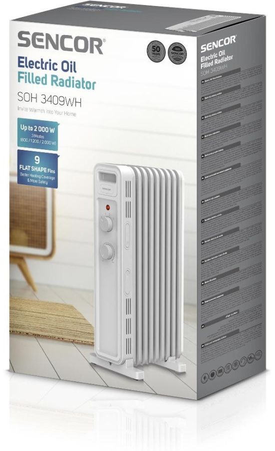 SENCOR SOH3509BK černáElektrický olejový radiátor má 9 topných článků, ochranu proti přehřátí a příkon 2000 W.SOH3509BK černá1 652 bez DPH1 999 Kč