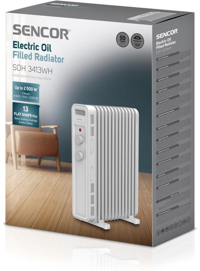 Na chalupě, v kanceláři, v dílně nebo v ložnici – všude tam, kde si potřebujete zatopit či přitopit, oceníte bezhlučný provoz, rychlý náběh topného výkonu i vysokou akumulační schopnost elektrických olejových radiátorů SENCOR s topnými články FLAT SHAPE. Na výběr je ucelená řada modelů v černé a bílé barvě v nabídce od 7 do 13 topných žeber.