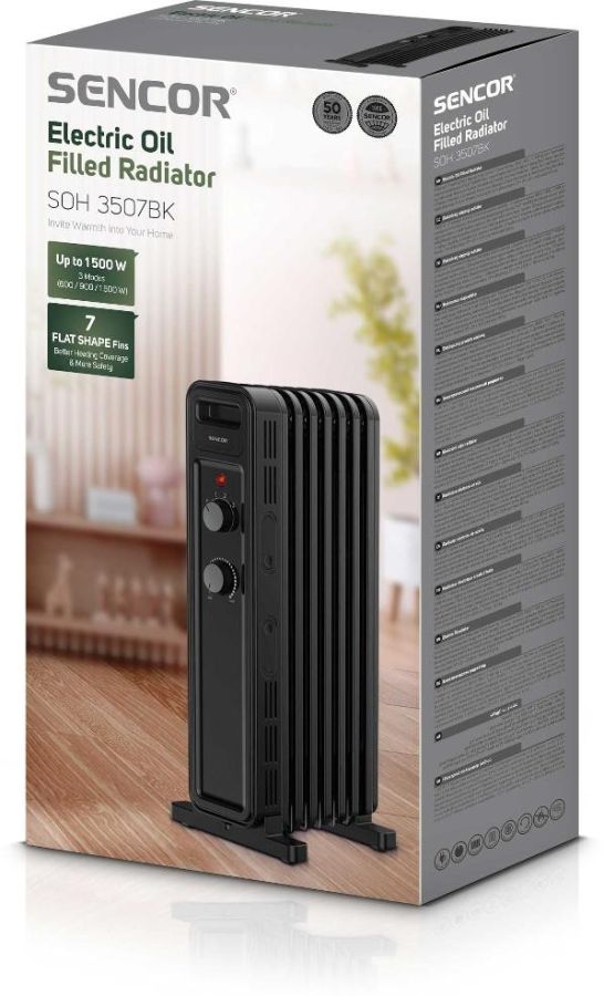 Na chalupě, v kanceláři, v dílně nebo v ložnici – všude tam, kde si potřebujete zatopit či přitopit, oceníte bezhlučný provoz, rychlý náběh topného výkonu i vysokou akumulační schopnost elektrických olejových radiátorů SENCOR s topnými články FLAT SHAPE. Na výběr je ucelená řada modelů v černé a bílé barvě v nabídce od 7 do 13 topných žeber.