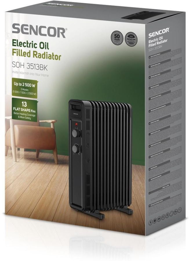 Na chalupě, v kanceláři, v dílně nebo v ložnici – všude tam, kde si potřebujete zatopit či přitopit, oceníte bezhlučný provoz, rychlý náběh topného výkonu i vysokou akumulační schopnost elektrických olejových radiátorů SENCOR s topnými články FLAT SHAPE. Na výběr je ucelená řada modelů v černé a bílé barvě v nabídce od 7 do 13 topných žeber.
