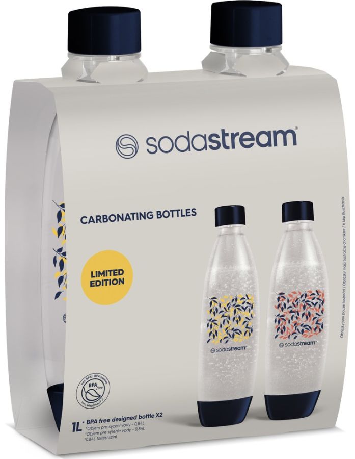 Náhradní balení láhví 1l na výrobník Sodastream Play, Source, Spirit, Power, Terra, Gaia, Art, Duo. Balení obsahuje 2 ks lahví.