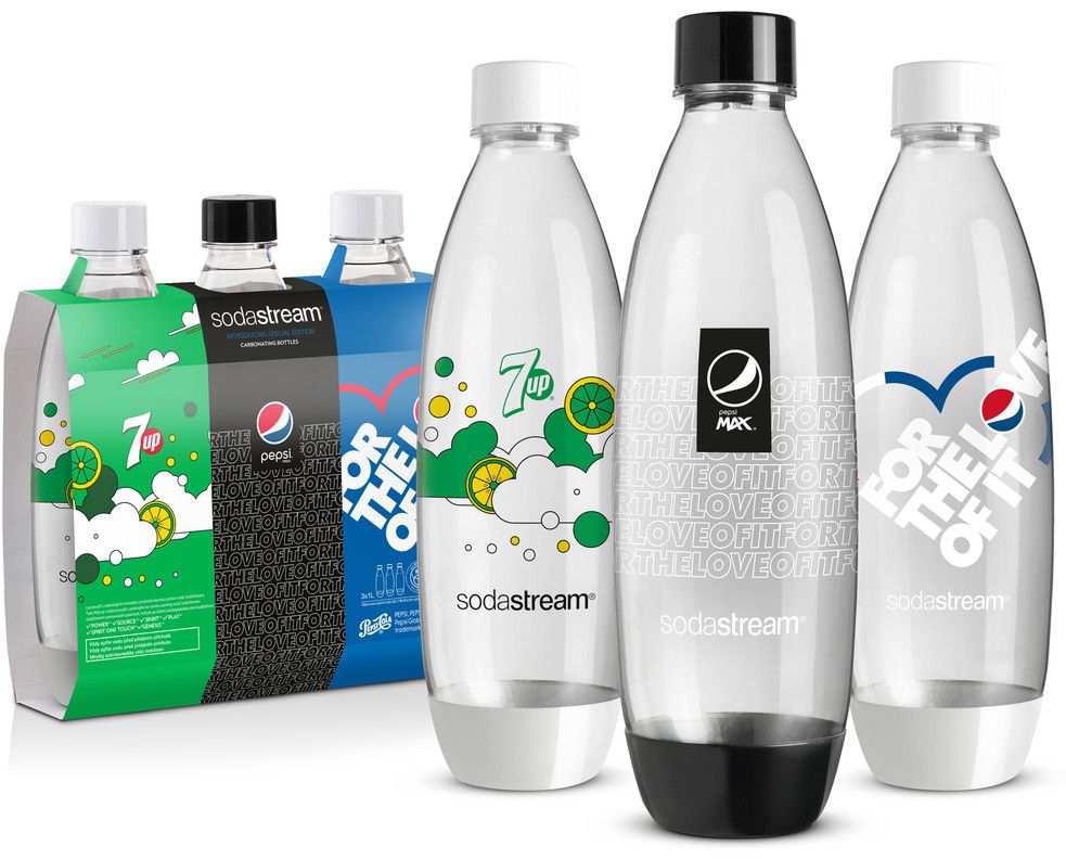 Náhradní balení láhví 1l na výrobník Sodastream Play, Source, Spirit, Power, Gaia, Art, Duo, Terra. Balení obsahuje 3 ks lahví.