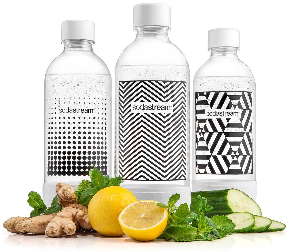 Náhradní balení láhví 1l na výrobník Sodastream Jet, Genesis, Fizz, Dynamo, Revolution. Balení obsahuje 3 ks lahví.