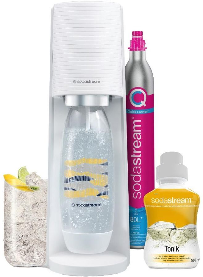 Obsah balení: 1x výrobník TERRA White, 1x lahev Fuse o objemu 1 litr, vhodná do myčky nádobí, s barevnými motivy v rytmu pulzujících vln, 1x bombička se systémem rychlého uchycení Quick Connect, 1x koncentrovaná příchuť Tonik o objemu 500 ml - postačí vám na výrobu až 12 velkých lahví hotového nápoje