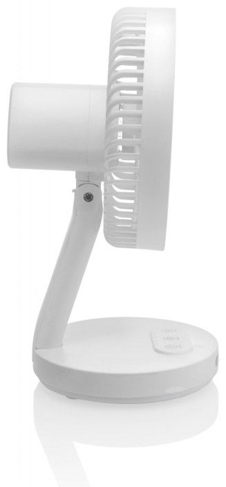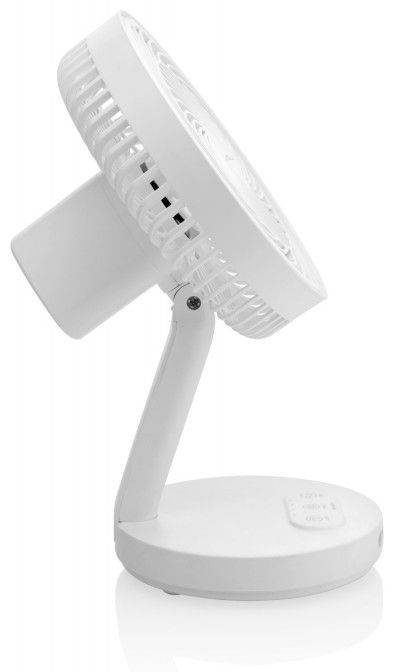 Nabíjecí stolní ventilátor o průměru 16 cm má 3 rychlosti a nastavitelný úhel sklonu.