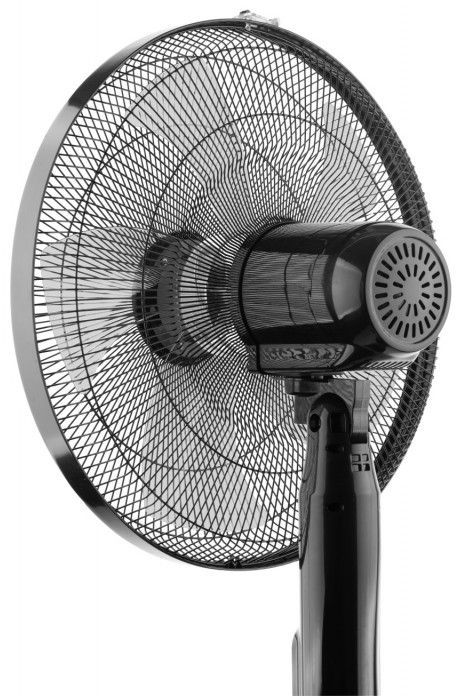Stojanový ventilátor o průměru 43 cm má 4 rychlosti, nastavitelnou výšku a úhel sklonu.
