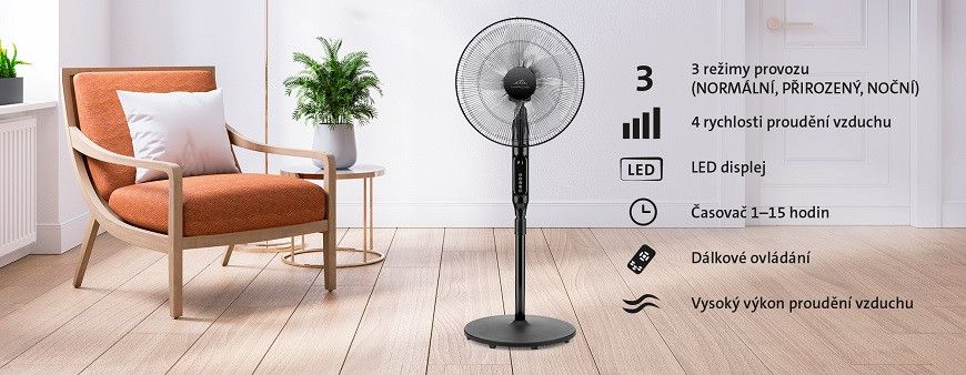 Stojanový ventilátor ETA Naos vám bude dělat společnost všude tam, kde si chcete dopřát pohodlí a příjemné osvěžení i během teplých dní.