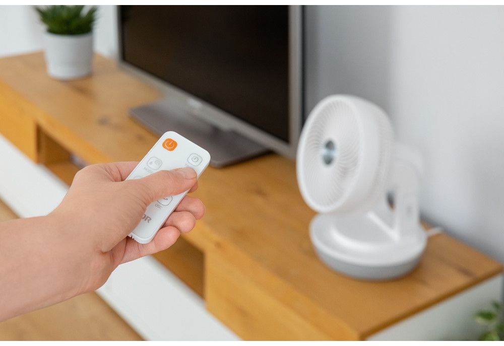 Stolní ventilátor o průměru 23 cm má 3 rychlosti a automatickou horizontální a vertikální oscilaci.