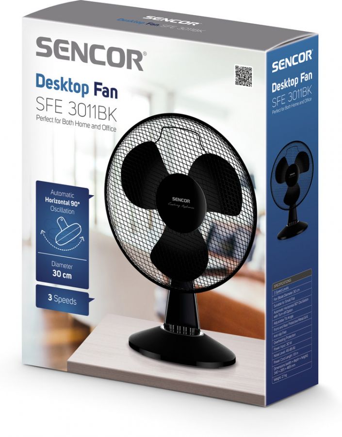 SENCOR SFE3027WH-EUE3 bíláStolní ventilátor o průměru 30 cm má 3 rychlosti a nastavitelný úhel sklonu.SFE3027WH-EUE3 bílá412 bez DPH499 Kč