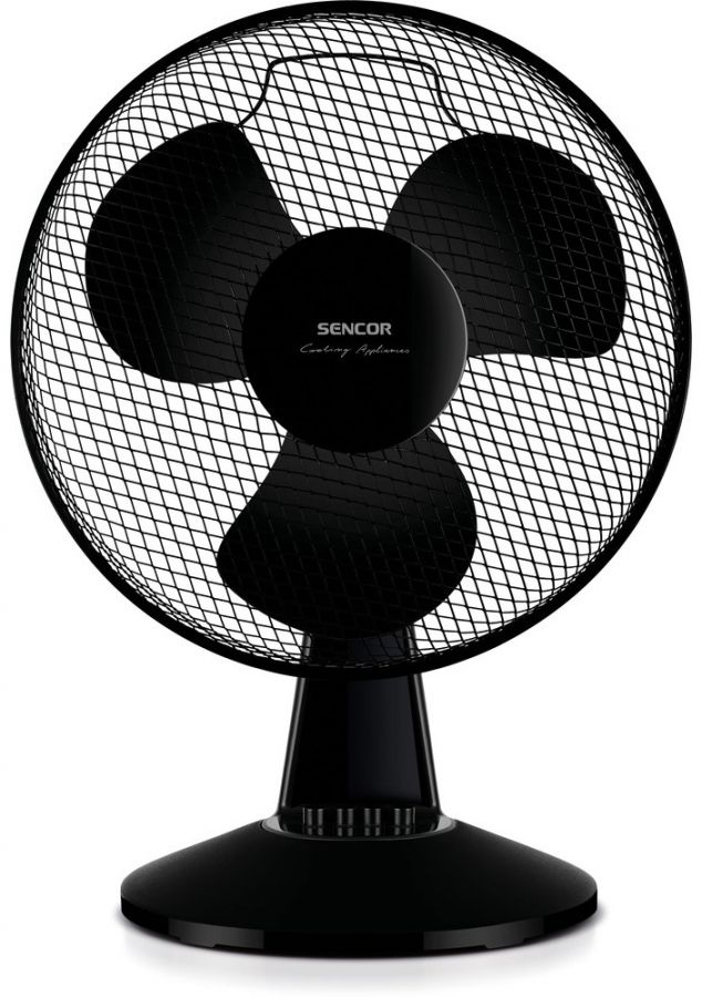 Stolní ventilátor o průměru 40 cm má 3 rychlosti a nastavitelný úhel sklonu.