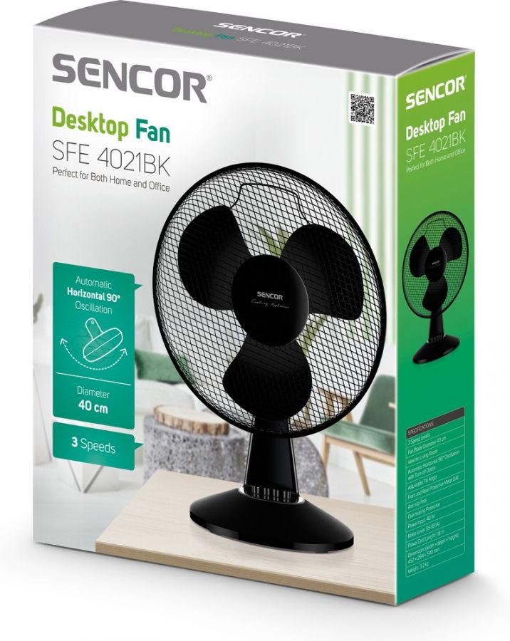 Jsem velmi povedený, lehký s prima rozměry, které potěší. S vrtulemi o velikosti 40 cm, dokážu vyrobit silný vzdušný proud, kterým účinně schladím i ve velkém horku. Mám také super délku přívodního kabelu 1,8 m! Díky němu mohu být pohodlně přemisťován po celé místnosti, abych byl všude tam, kde mě potřebujete, doma v kanceláři nebo na dovolené.