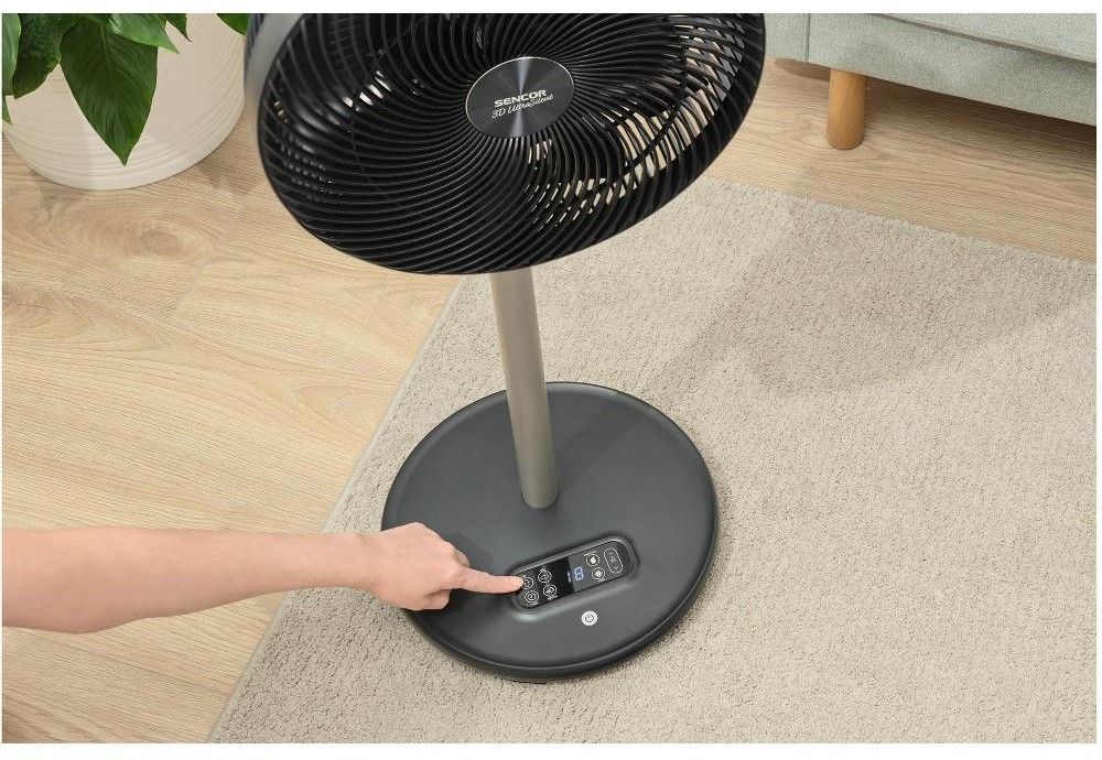 Je elegantní a decentní. Má na výšku 90 cm, o kousek víc, než jeho menší bráška SFN 2540WH. Vizuálně nebude rušit v ložnici, obývacím pokoji ani pracovně. Budu nenápadný. Přesto s přehledem osvěží celou místnost. 9 lopatek 30cm hlavice totiž na maximální výkon nabídne průtok až 6,5 m/s. Hlavice ventilátoru se navíc může pohybovat automaticky v obou osách v rozmezí až 90 °. Distribuuje tak svěží vzduch rovnoměrně po celé místnosti.