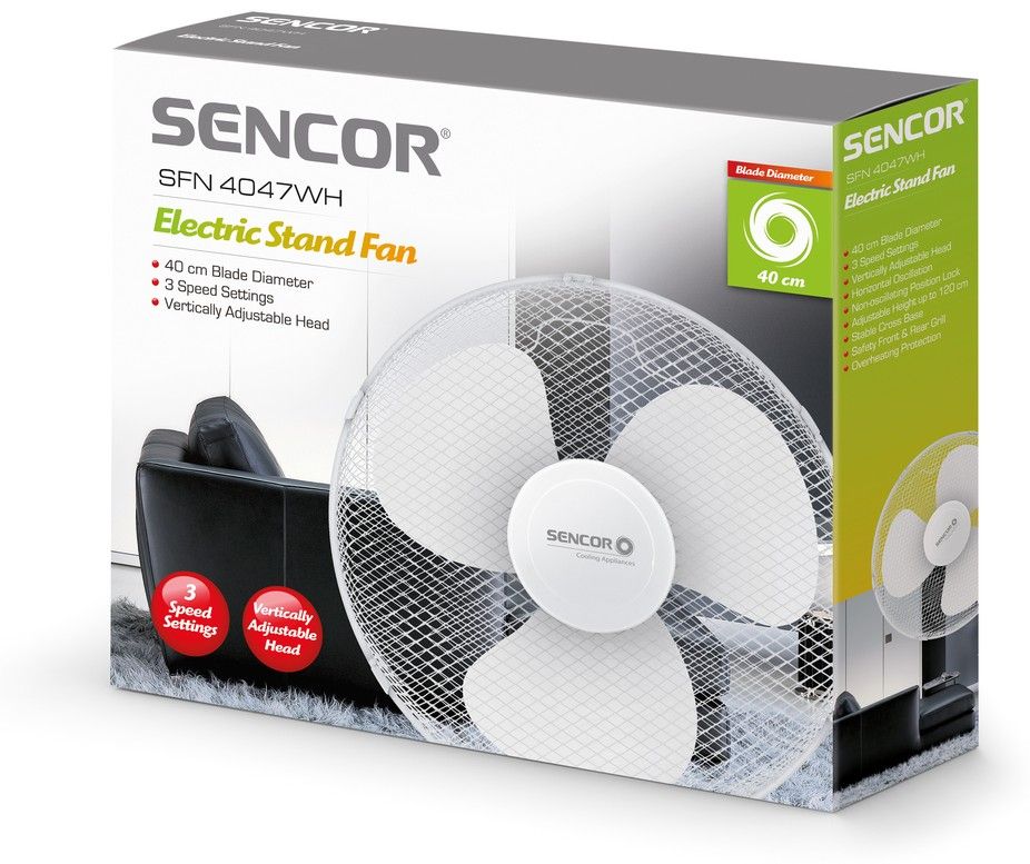 SENCOR SFN4031BK černáStojanový ventilátor o průměru 40 cm má 3 rychlosti, nastavitelnou výšku a úhel sklonu.SFN4031BK černá578 bez DPH699 Kč