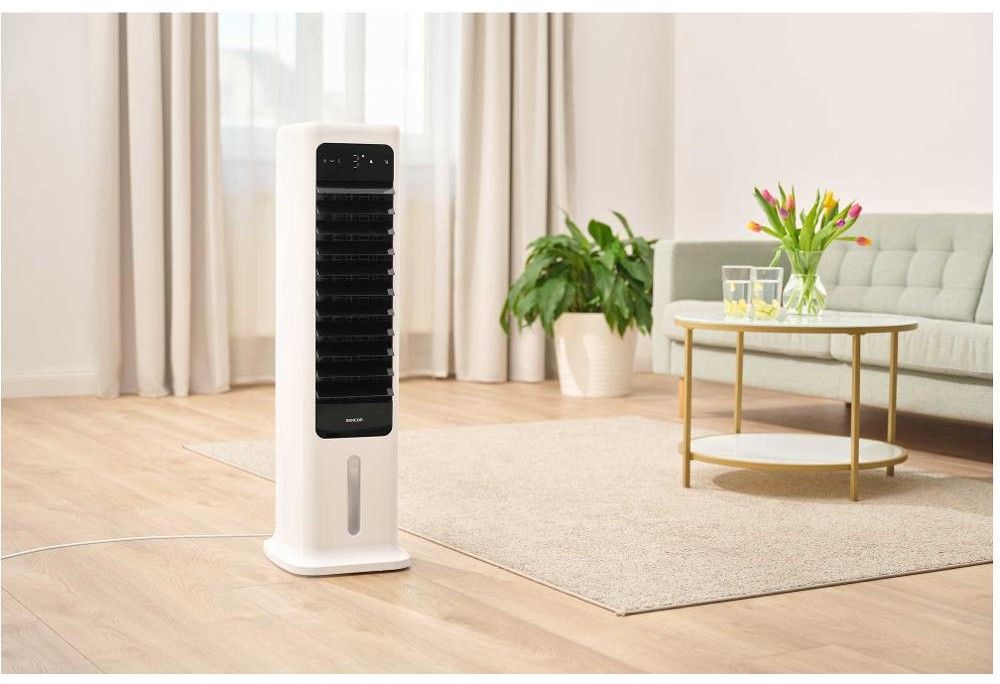 Představujeme vám výkonný ochlazovač, zvhlčovač a současně klasický letní ventilátor. Funkce 3v1 schované v elegantním štíhlém vysokém těle vás nadchnou. S velkou 6l nádrží a výkonným 60W motorem vám dopřeje letní osvěžení tak, jak si sami budete přát. Je opatřen 3 režimy s volbou ze 3 rychlostí proudění vzduchu. Dotykový ovládací panel s přehledným LED displejem je příjemně bíle podsvícen a vybaven automatickým vypnutím po 1 minutě. Společně s dálkovým ovladačem a možností ovládání přes aplikaci Sencor HOME dopřeje maximální uživatelský komfort s plnou kontrolou nad zařízením.