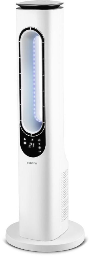 Bezvrtulový ventilátor má 3 rychlosti, 3 režimy provozu, 3 barevné varianty barevného podsvícení, dotykové ovládání s LED indikátory a dálkové ovládání.