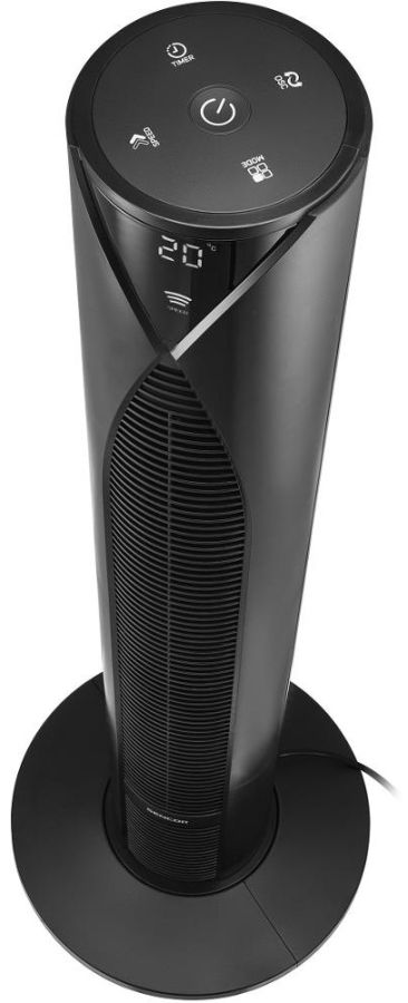 Ovladání sloupového ventilátoru probíhá pomocí dotykového panelu na horní straně. Nastavování z pohodlí postele nebo gauče má na starost dálkový ovladač. Při používání můžete využívat i funkci časovače s automatickým vypnutím v rozmezí 1-12 hodin.