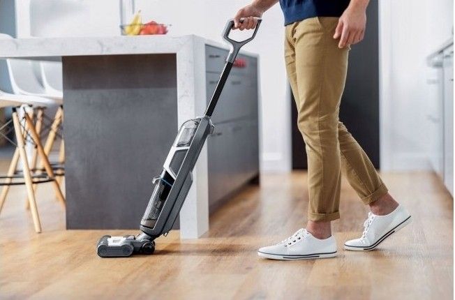Tyčový vysavač vysává, vytírá a suší v jednom kroku má 2 režimy čištění, automatické dávkování vody, automatické samočištění a výdrž baterie až 25 minut.