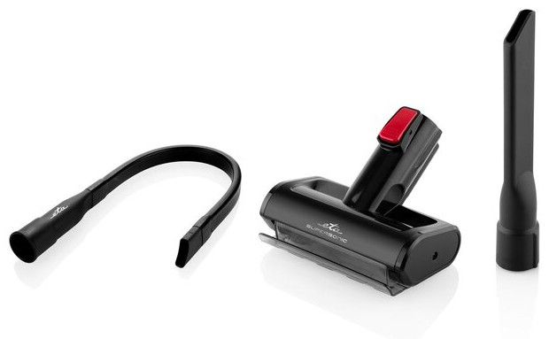 Součástí balení je rotační turbokartáč a kovová sací trubka s kloubem, dlouhá štěrbinová hubice pro vysávání v úzkých a těžko přístupných místech, krátká štěrbinová hubice vhodná pro rohy gaučů či úklid drobků na stole a malý turbokartáč na měkké textilní povrchy.