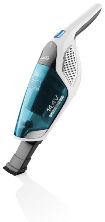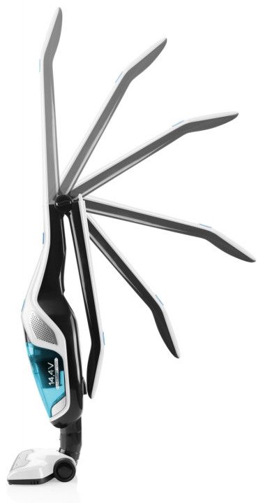 Tyčový, bezsáčkový vysavač 3v1 s 14,4 V Li-ion akumulátorem, který na jedno nabití pracuje až 45 minut.