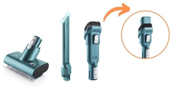 Praktickou vychytávkou je štěrbinová hubice s LED osvětlením, která odhalí smítka i v těch nejhůře přístupných místech. Kartáček 2 v 1 si zase poradí s pavučinami i prachem na citlivých površích (elektronika, lesklý nábytek). Přizpůsobivá kovová trubka s flexibilním kloubem vám umožní dostat se pod postel nebo gauč bez ohýbání zad do hloubky až 60 cm. Hubice má výšku pouze 7 cm a vejde se tak i pod velmi nízké sedací soupravy.
