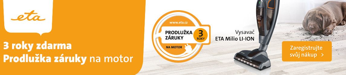 Záruku na motor vysavače ETA Milio Li-ion vám zdarma prodloužíme na 3 roky – stačí vyplnit registrační formulář.