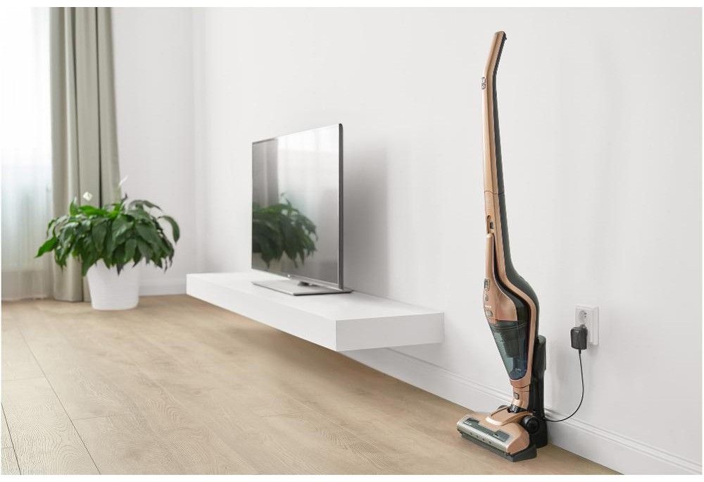 - Nabíjecí základna pro praktické uložení vysavače s integrovaným držákem příslušenství