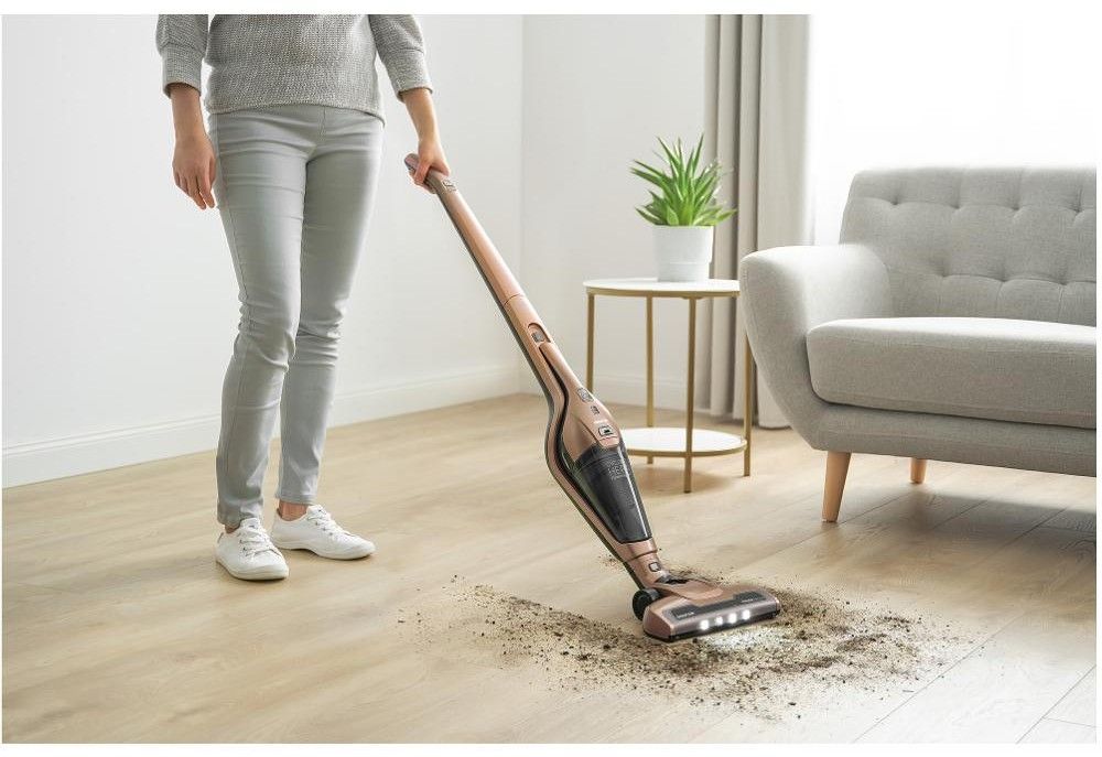Cyklónový filtrační HEPA systém zachycuje vířící částice prachu a udržuje stálý výkon sání. Pomáhá i při úklidu povrchů s velkou koncentrací prachu, jako jsou místa za nábytkem nebo husté koberce. LED osvětlení hubice vám pak pomůže najít každé zbylé smítko.