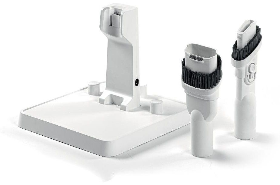 Zárukou, že tyčový vysavač SVC 9829WH bude vždy dostatečně nabitý a připraven k úklidu je samostojící nabíjecí stanice. Najdete ji jako součást balení. Vestavěný držák na příslušenství je vysoce praktický, protože všechny tři nástavce máte pohodlně po ruce.