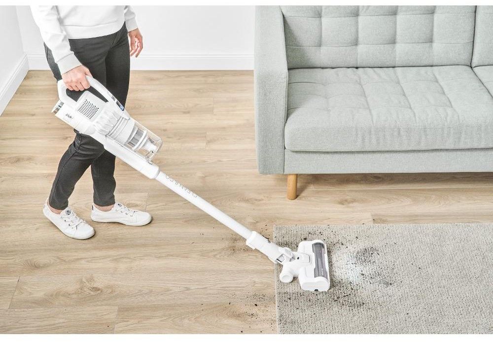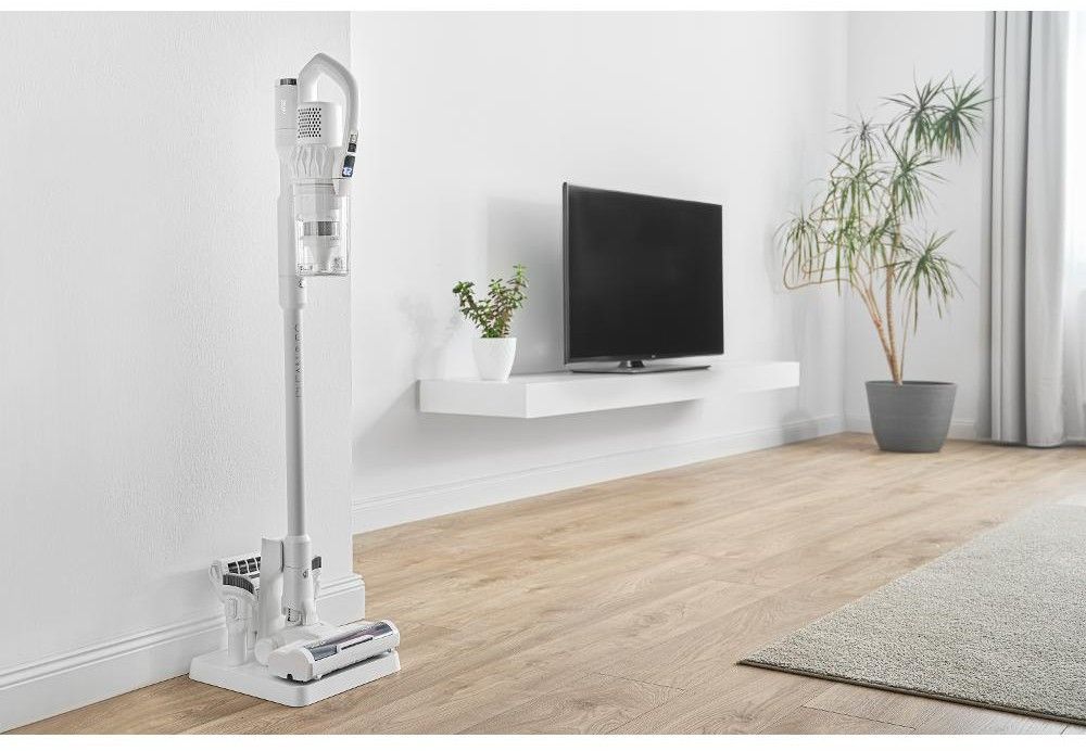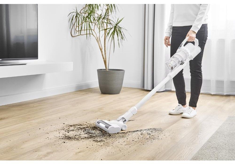 Silný 550W motor. Nízká hmotnost. Ergonomická rukojeť a jednoduché ovládání. To všechno činí tento tyčový vysavač neocenitelným domácím pomocníkem. Li-Ion baterii 28,8 V/3 000 mAh u něj zabezpečuje až na 70minutový úklid na jedno nabití.