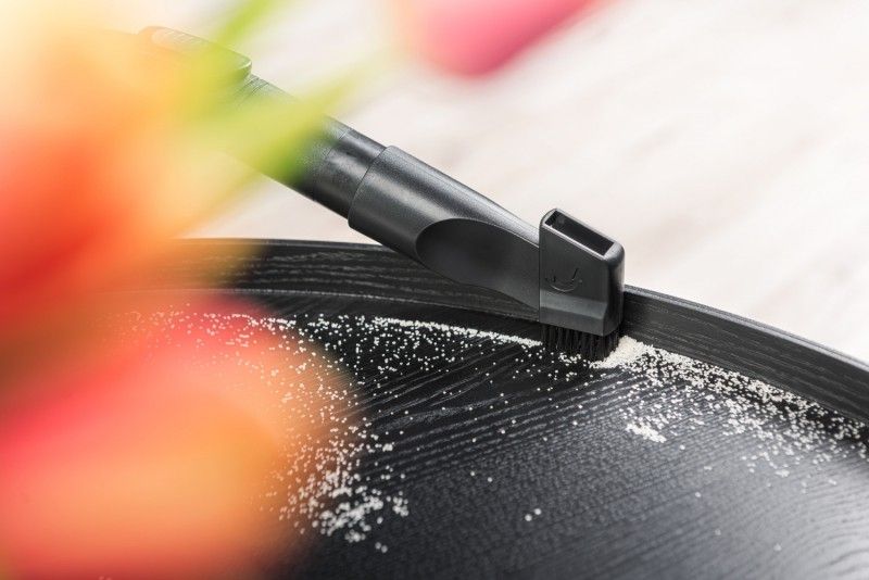 Kartáček s jemnými štětinkami pomáhá při vysávání prachu nebo pavučin z choulostivých míst (např. na zdech nebo obrazech)