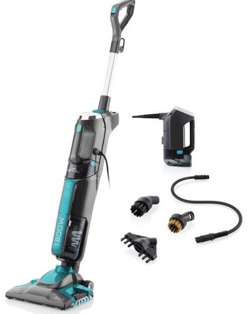 Tyčový vysavač, parní mop a ruční parní čistič v jednom je multifunkční pomocník pro snadný a rychlý úklid různých druhů povrchu.