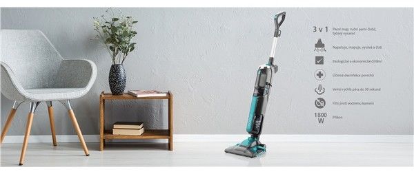 - nebo tyčový vysavač - Vysává, napařuje a mopuje v jednom kroku