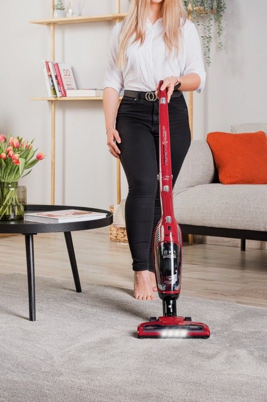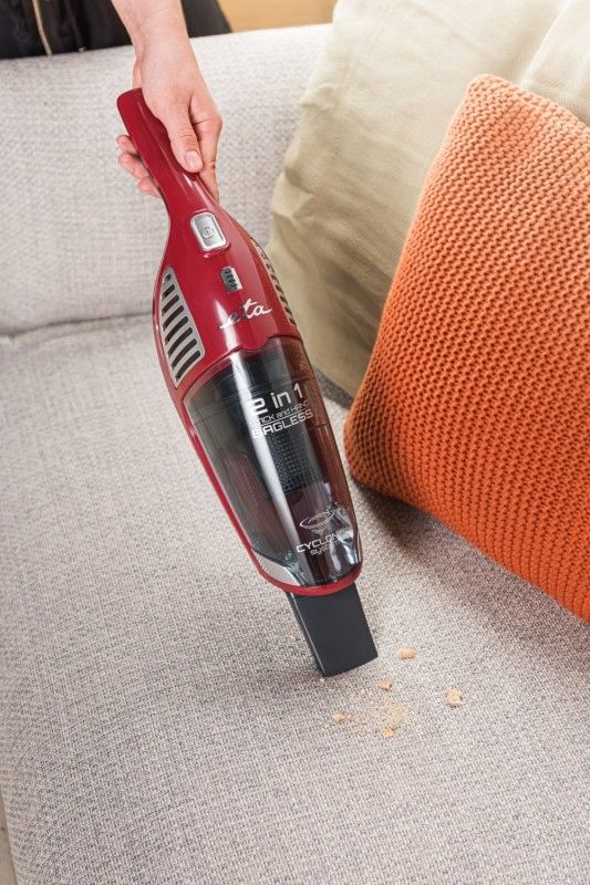 Tyčový vysavač můžete stiskem jednoho tlačítka proměnit v praktickou ruční jednotku. Tu využijete při rychlém úklidu po obědě nebo při nehodě s vysypanou kávou. Ručním vysavačem rychle vysajete všechny nechtěné drobečky bez nutnosti vytahování celého přístroje.