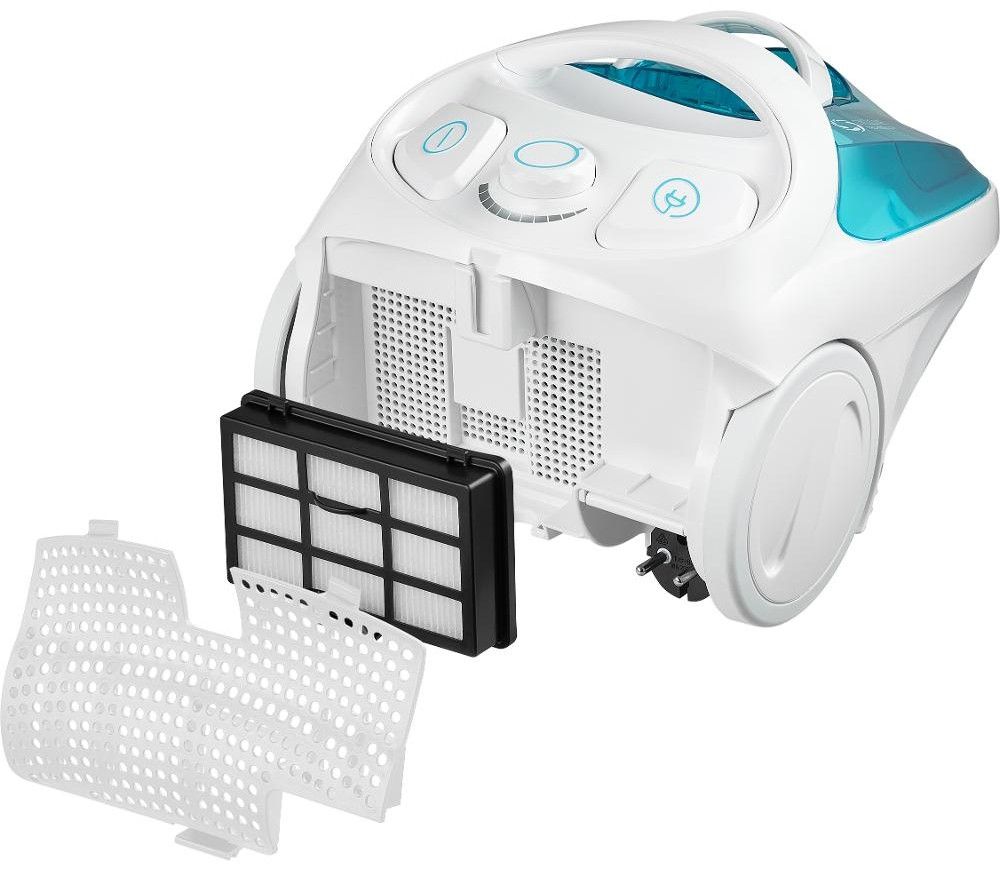 Cyklónová filtrace zajišťuje stálý sací výkon po celou dobu vysávání a zároveň se díky účinným filtrům postará o dokonalou filtraci a dokonalé zachycení i těch nejmenších částeček prachu. Vysavač je tak vhodný i pro alergiky a lidi citlivé na vnímání prachu. Bezsáčková technologie šetří vaši peněženku i přírodu. Nádoba na prach o objemu 1,5l je plně omyvatelná a snadno se udržuje v hygienické čistotě.