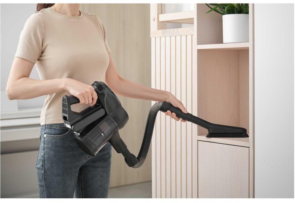 Za pomoci otočné hubice v rozsahu 180° můžete jednoduše a efektivně manévrovat okolo nábytku a snadno uklidit i hůře dostupná místa. Vysavač je lehký a umožňuje plynulý pohyb po domácnosti. Horizontální pozice umožňuje úklid pod nízkým nábytkem, 360° technologie zase přístup kamkoliv i úklid ve výškách. Prostě od podlahy po strop.