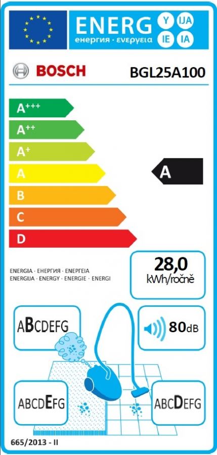 - Třída účinnosti vysávání tvrdých podlah: D