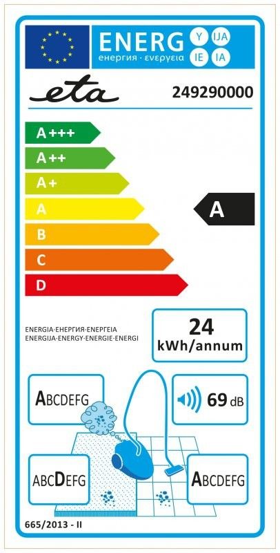 ETA 2492 90000 Canto II je sáčkový vysavač s úsporným ECO motorem se sacím výkonem až 700 W a s prachovým sáčkem o objemu 4l. Délka napájejícího kabelu je 8 m. Předností je i akční rádius až do délky 11 m. Vysavač Vám tak umožní dostat se na větší vzdálenost bez častého přepojování napájejícího kabelu. Vysavač umožňuje taky elektronickou regulaci sacího výkonu.