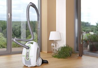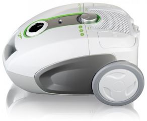 Ke komfortnímu užívání přispívá ergonomicky tvarovaná rukojeť a nechybí měkčená kolečka pro ochranu tvrdých podlah. Hlučnost vysavače je 74 dB(A) a akční rádius 11 m.