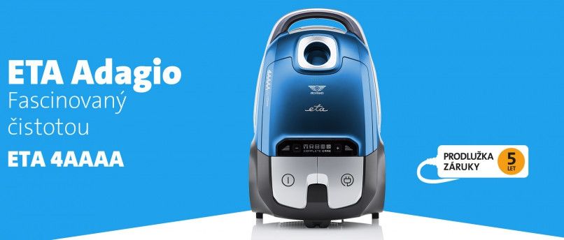 Záruku na motor vysavače ETA Adagio vám zdarma prodloužíme na 5 let – stačí vyplnit registrační formulář. Bezplatnou službu Prodlužka záruky si registrujte ZDE.