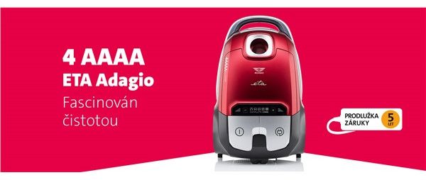 Záruku na motor vysavače ETA Adagio vám zdarma prodloužíme na 5 let – stačí vyplnit registrační formulář. Bezplatnou službu Prodlužka záruky si registrujte ZDE.