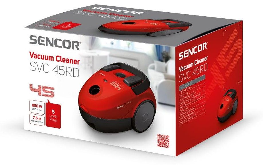 SENCOR SVC45WH-EUE3 bíláVysavač s maximálním výkonem 850 W a objemem prachového sáčku 1,5 l.SVC45WH-EUE3 bílá826 bez DPH999 Kč