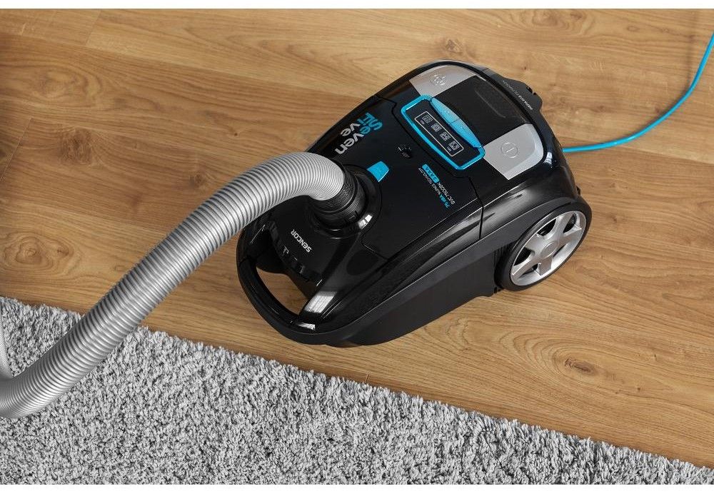 Na sáčkový vysavač mám velmi dobrý příkon 750 W a bezchybné vysátí různých druhů podlah i textilií včetně čalounění je u mě samozřejmostí. Řadím se mezi vysavače, u nichž můžete očekávat stoprocentní výsledky. Stupeň výkonu si snadno elektronicky zregulujete tlačítky na mé základně. Pro navýšení stačí stisknout tlačítko se symbolem plus a pro snížení naopak to se symbolem minus. Citlivě se tak mohu přizpůsobit i vysávanému povrchu, vyšší výkon je vhodný na koberce, nižší na citlivé plochy. Přeci jen jsem vysavač Sencor a jsem kvalifikovaný odborník na vysávání, což dokazují i výsledky v zátěžových testech. Získal jsem značku A rovnou ve třech kategoriích. Pyšním se nejvyšší třídou energetické účinnosti, filtrace prachu i vysávání tvrdých podlah. Mám pro svou práci zápal, avšak s bezpečnostní tepelnou pojistkou se mi motor nepřehřeje, a jsem proto velmi bezpečný.