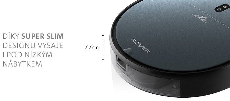 - SUPER SLIM DESING - svou výškou pouze 7,7 cm vysaje i pod nízkým nábytkem