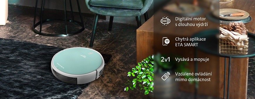 - Umožňuje snadno ovládat a kontrolovat robotický vysavač ETA 1248 ROVER