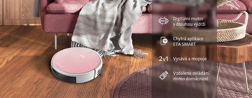 Díky chytré aplikaci rozdáte vysavači úkoly z gauče, koupelny nebo z práce. Chcete mít uklizeno pokaždé když přijdete domů? Úklid si můžete naplánovat klidně na konkrétní den a čas. Aplikace ETA SMART vám zkrátka umožní pohodlné ovládání vysavače odkudkoliv.