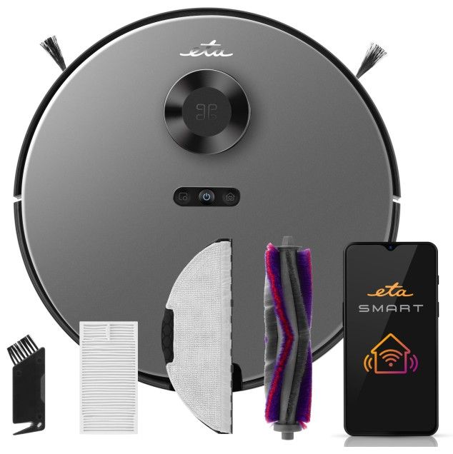 Robotický vysavač budete mít s aplikací ETA SMART stále pod kontrolou. Úklid můžete spustit klidně z práce či po cestě domů nebo jej naplánovat pravidelně na vybraný den i čas. Samozřejmostí je nastavení sacího výkonu (4 úrovně) i regulace intenzity mopování (3 úrovně).