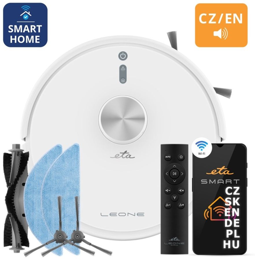 Inteligentní robotický vysavač ETA Leone 2 v 1 se o kompletní úklid domácnosti postará za vás. ETA Leone podlahu vysaje a následně i perfektně vytře. Oblasti úklidu můžete vysavači pohodlně určit v aplikaci ETA SMART, ve které naleznete spoustu dalších funkcí a možností vysavače.