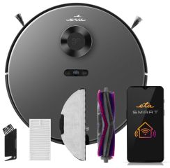 Robotický vysavač budete mít s aplikací ETA SMART stále pod kontrolou. Úklid můžete spustit klidně z práce či po cestě domů nebo jej naplánovat pravidelně na vybraný den i čas. Samozřejmostí je nastavení sacího výkonu (4 úrovně) i regulace intenzity mopování (3 úrovně).