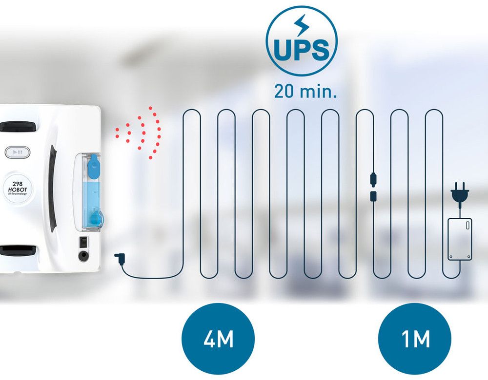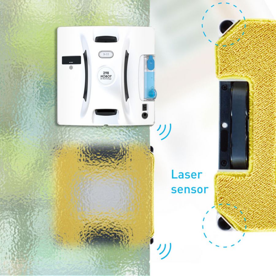 HOBOT 298 je robotický čistič oken s automatickým rozprašovačem vody a vestavěným zásobníkem mycího prostředku na okna. Robotický čistič oken HOBOT 298 je jako první a jediný na světě vybaven patentovaným ultrasonickým rozprašovačem vody, který vytváří 15 mikrometrů hustou mlhu přispívající k ještě účinnějšímu a dokonalému čištění oken. HOBOT 298 rychle a precizně vyčistí okna a různé druhy skleněných povrchů pomocí speciálních utěrek z mikrovlákna. Robot se pohybuje lineárně a čištění probíhá automaticky ve dvou směrech. Díky systému Single-side můžete HOBOT 298 používat na různých tloušťkách skel, zrcadel, oknech, sprchových koutech a další. HOBOT 298 je vybaven GYRO senzorem, laserovými senzory a navigačním systémem s AI-Techonology S2.1, které kontrolují pohyb robota. HOBOT 298 je možné ovládat chytrým mobilním telefonem nebo dálkovým ovládáním.