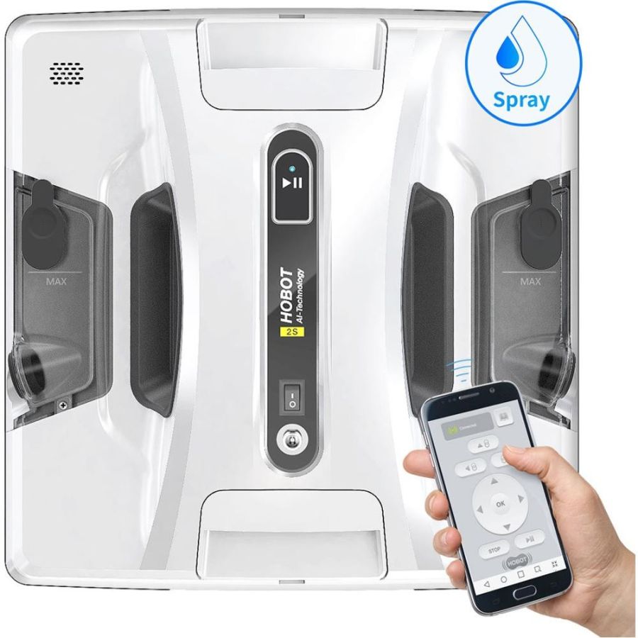 Čistič oken HOBOT 2S poskytuje automatické rozprašování vody nebo mycího prostředku HOBOT na povrch oken. Dva zásobníky s duálním rozprašovačem vody automaticky vytváří 15 μm hustou mlhu, podobnou lidskému výdechu vzduchu, která rozpustí prach a jemná utěrka z mikrovlákna dokonale vyčistí skla oken. Díky této technologii HOBOT 2S spotřebuje pouze 2 ml destilované vody nebo čisticího prostředku HOBOT na plochu o rozměru 1m2.